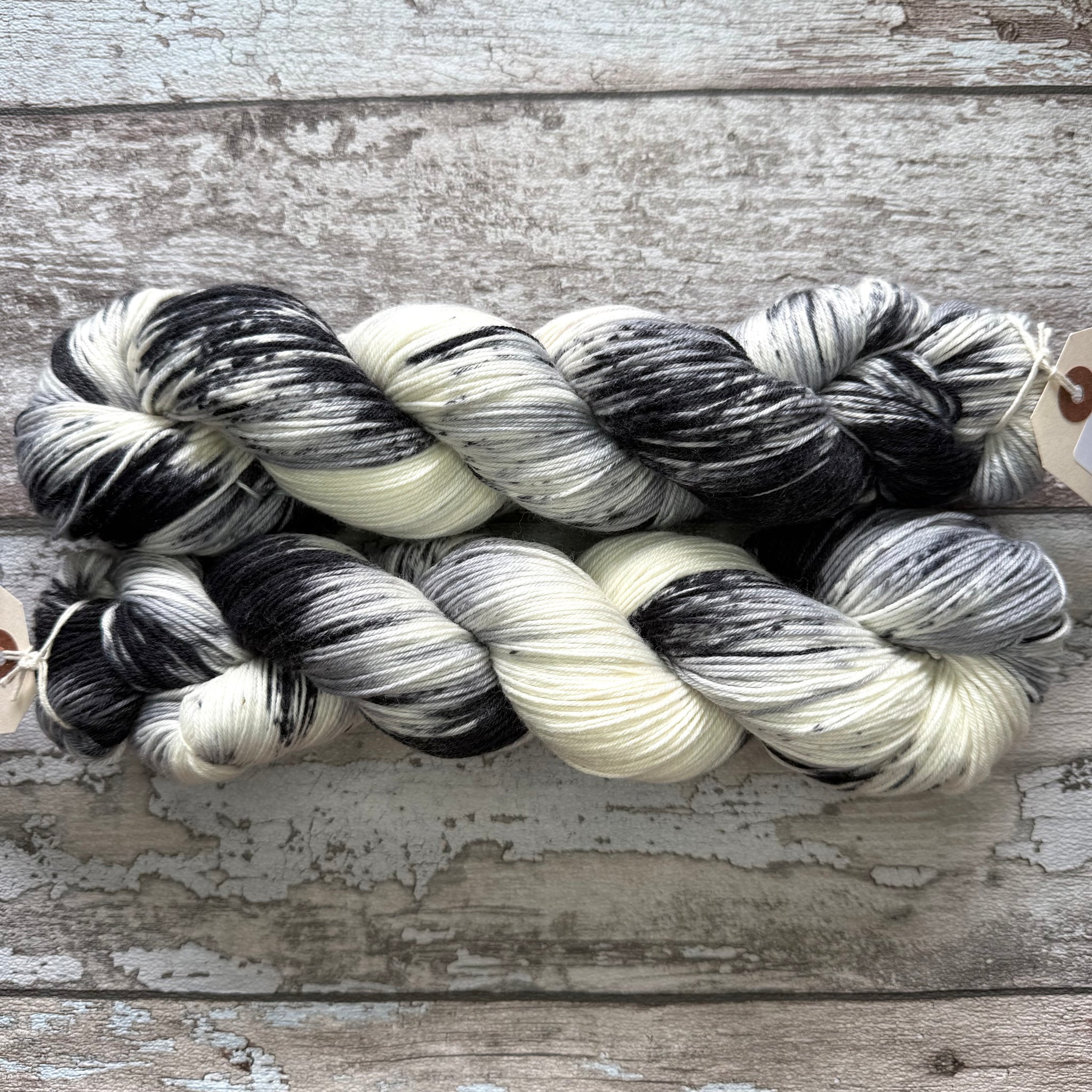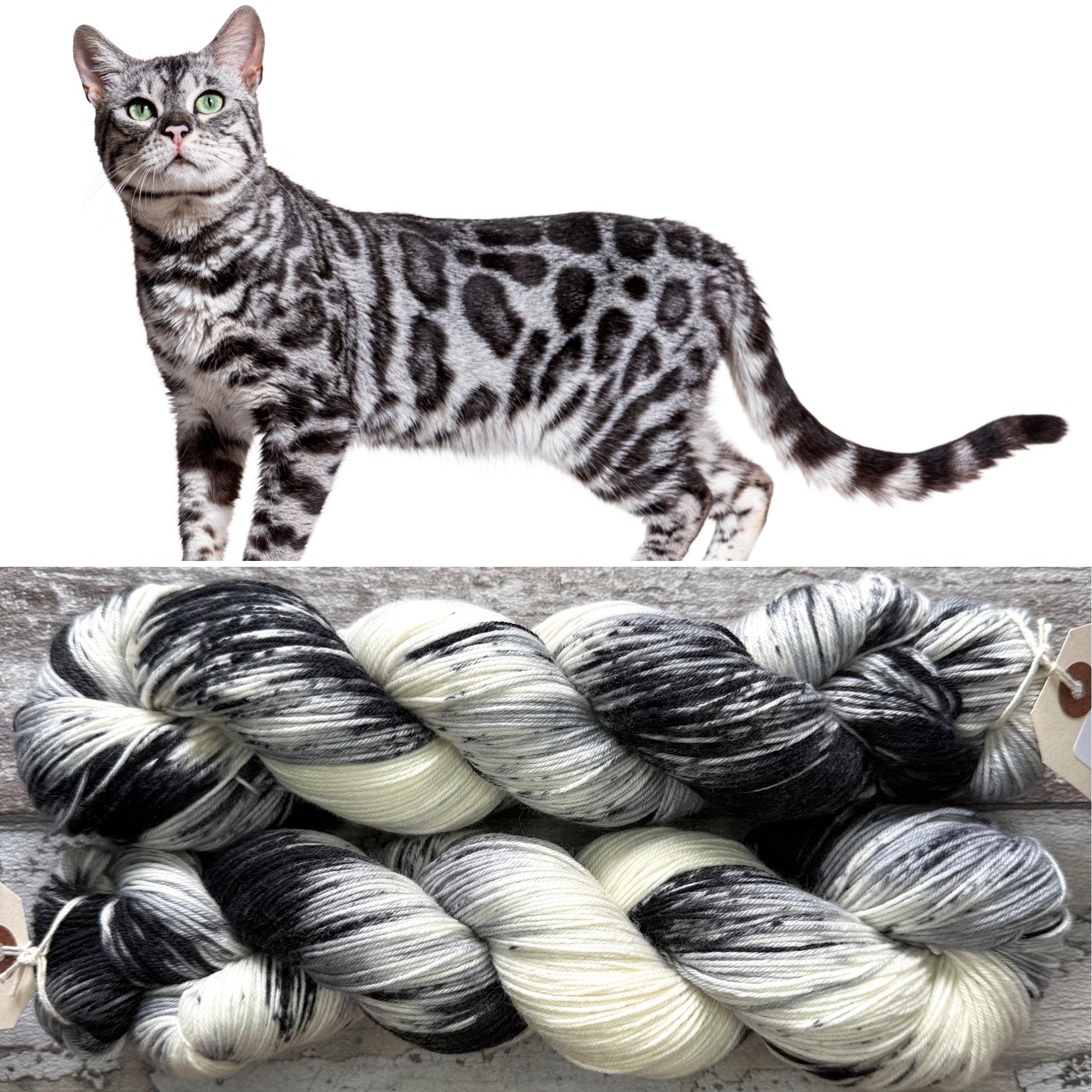 From one of my most popular series, silver Bengal cat has a cute mix of black, white, and grey. Each skein is has unique markings, just like every cat!