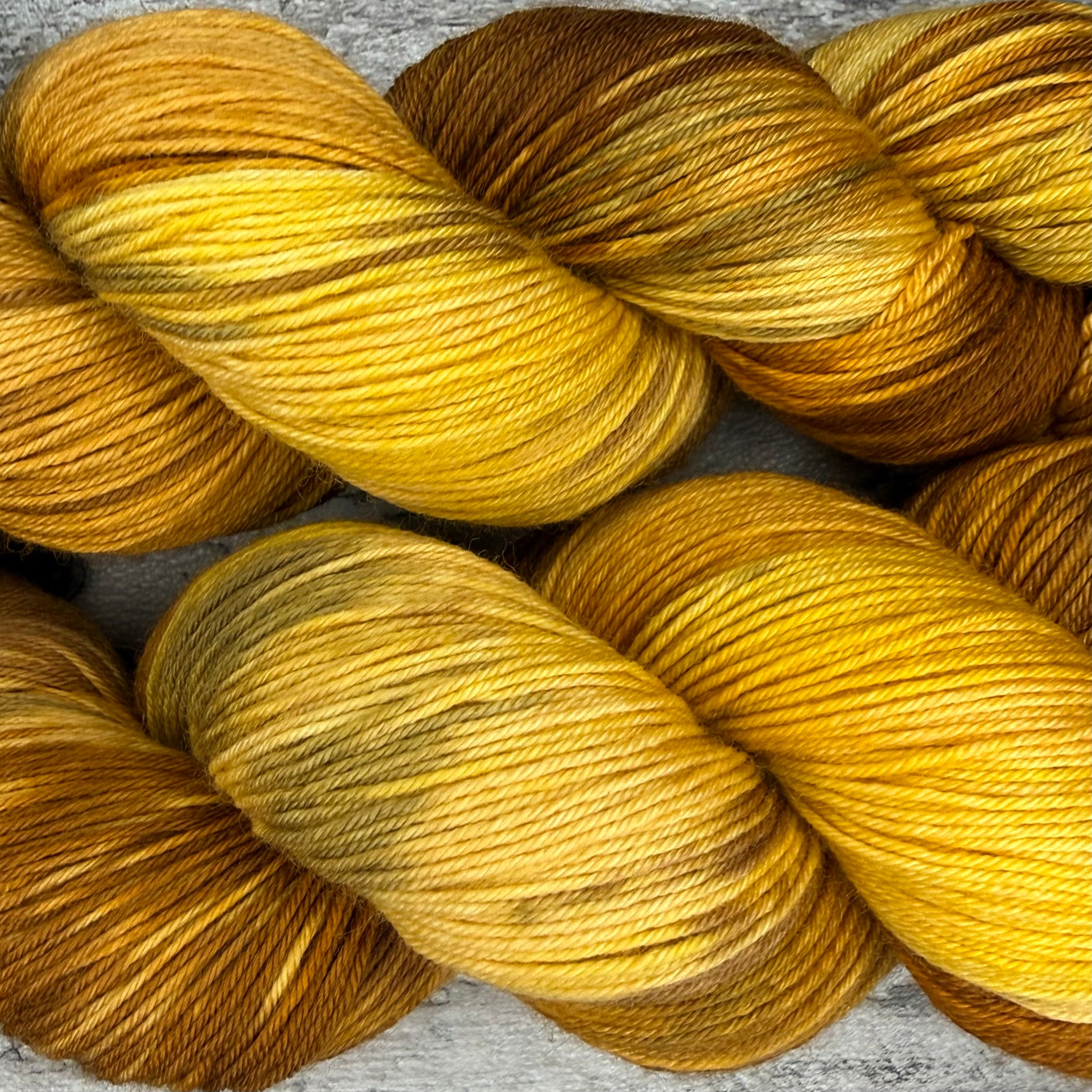 Golden, pumpkin and amber tones curl through this cosy ginger cat inspired yarn, reminiscent of firelit fur and sleepy purrs. Perfect for comforting shawls, mitts or snuggly socks, it brings warm hearthlight to every stitch and celebrates the soft, contented magic of your favourite feline friend.
