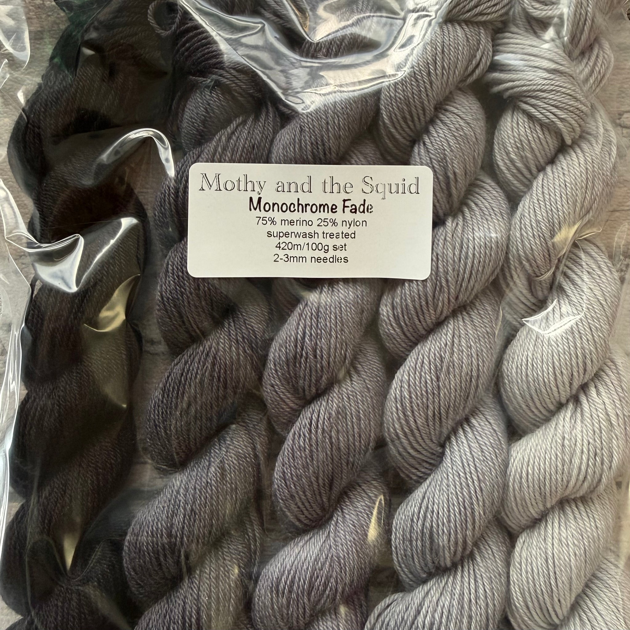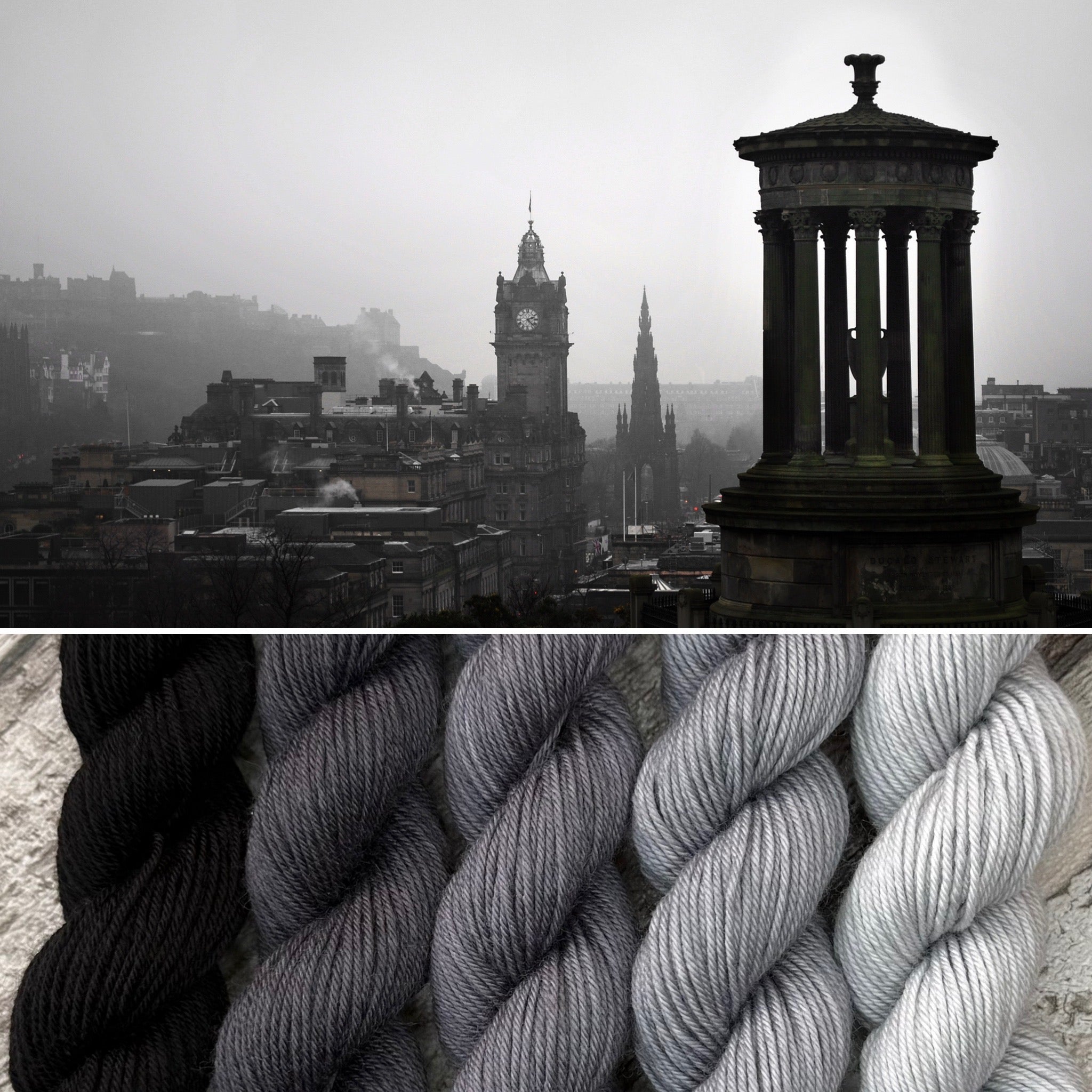 A very pretty fade from dark black to the lightest cloud dancer grey inspired by the Scottish sky. Intended for those on board with the monochrome zeitgeist of 2026, this represents understated luxury that those who find colour a bit much may love.