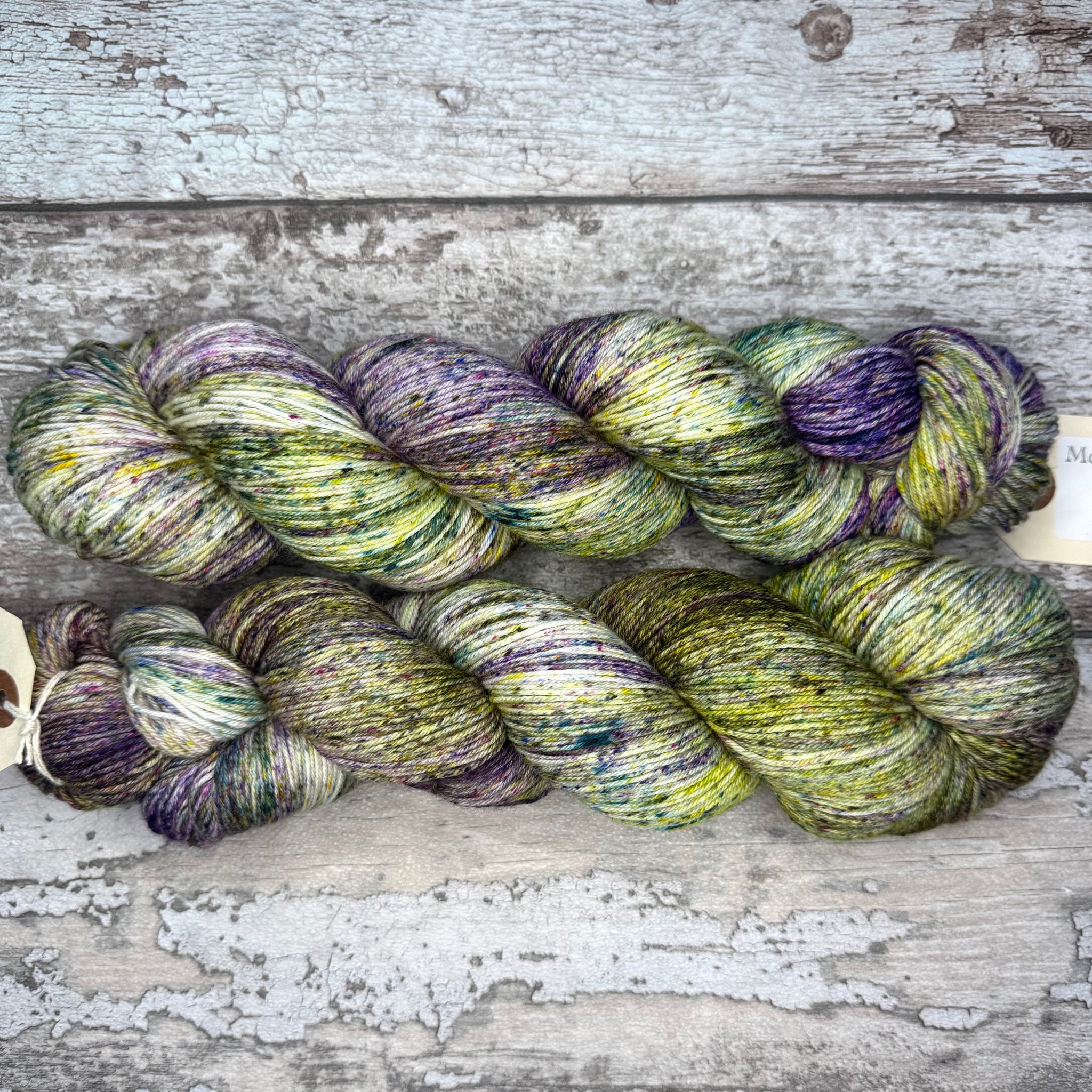This yarn is a soft smooth sock yarn spun from 75% superwash merino for softness and warmth and 25% nylon for enhanced durability. Approximately 420 metres per 100g skein. Suitable for 2-3mm needles.