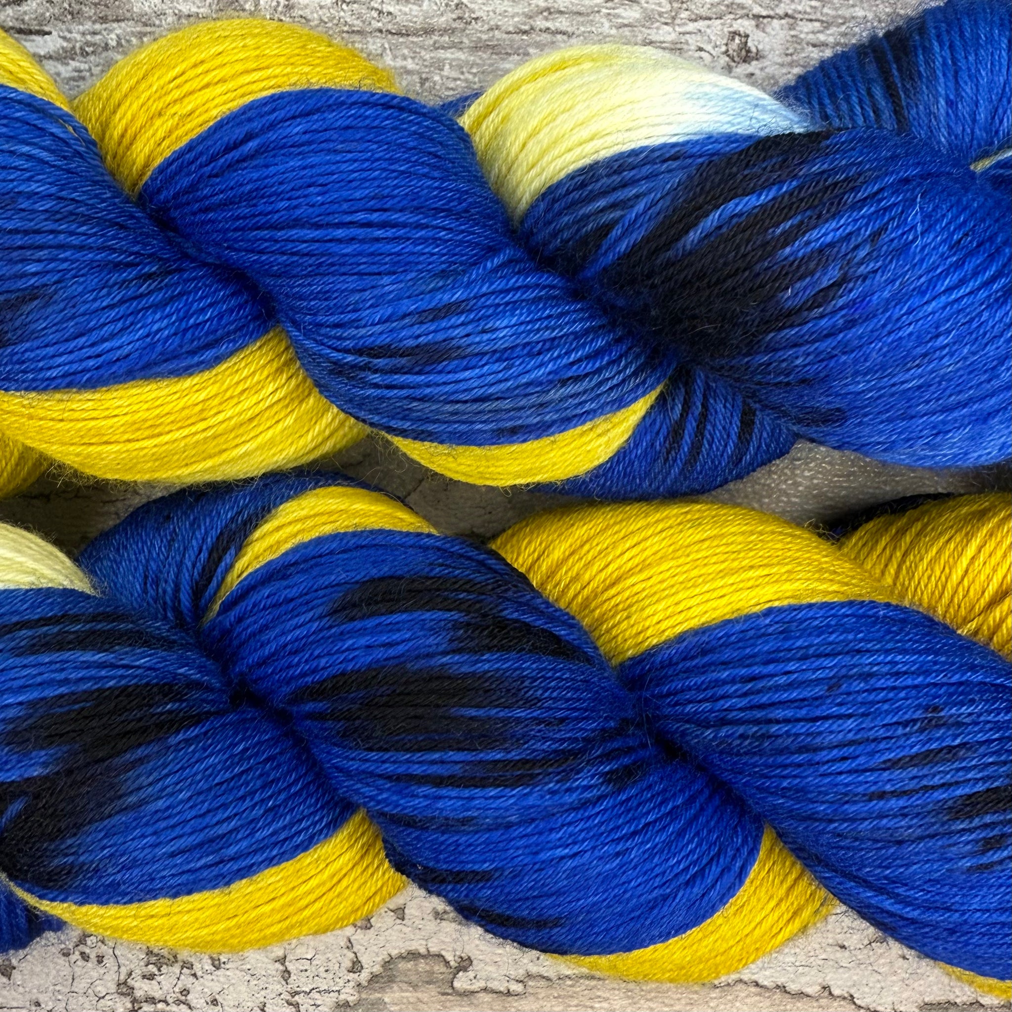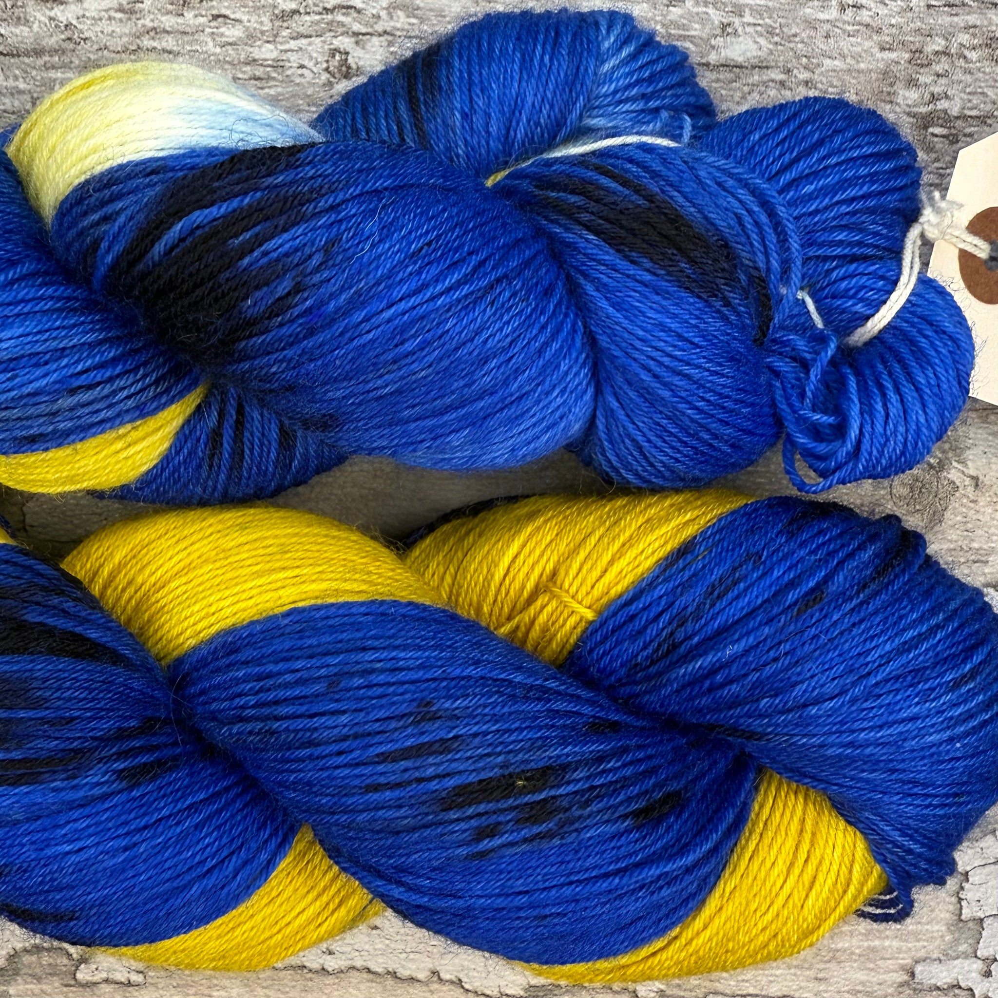 This is a superwash treated sock weight (fingering, 4ply) yarn spun from 75% Bluefaced Leicester wool with 25% nylon for enhanced durability. It is suitable for approximately 2-5mm needles. About 420 metres per 100g skein. This yarn is presented as a skein. If you would like it caked then this paid-for service adds 24h to the dispatch time.