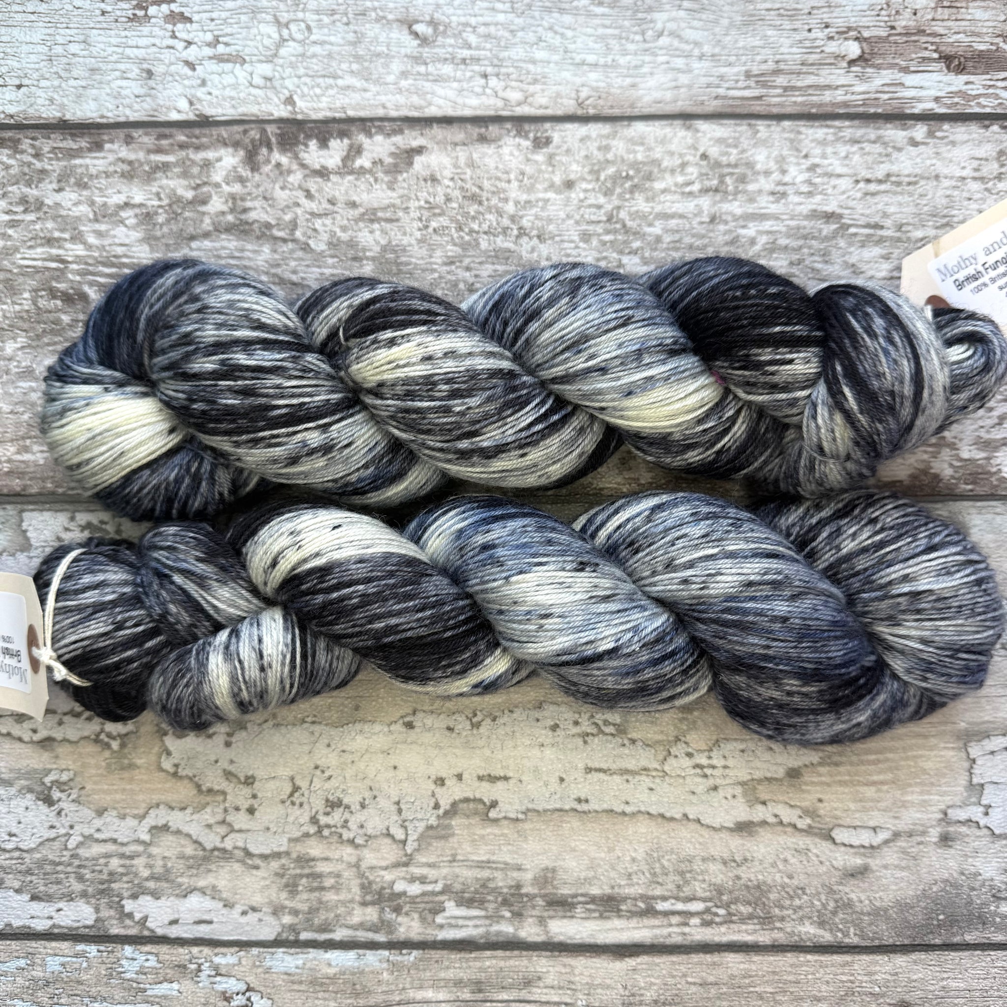This is a superwash treated sock weight (fingering, 4ply) yarn spun from 100% Bluefaced Leicester wool. It is suitable for approximately 2-5mm needles. About 420 metres per 100g skein. This yarn is presented as a skein. If you would like it caked then this paid-for service adds 24h to the dispatch time.