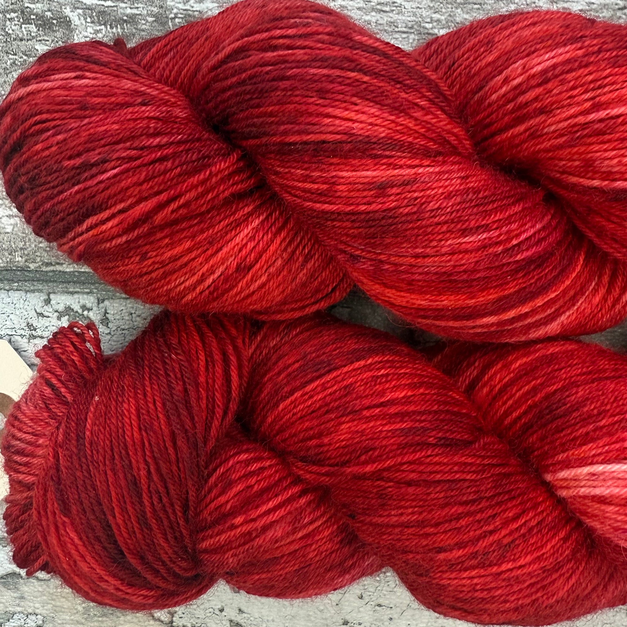 This is a superwash treated sock weight (fingering, 4ply) yarn spun from 100% Bluefaced Leicester wool. It is suitable for approximately 2-5mm needles. About 420 metres per 100g skein. This yarn is presented as a skein. If you would like it caked then this paid-for service adds 24h to the dispatch time.