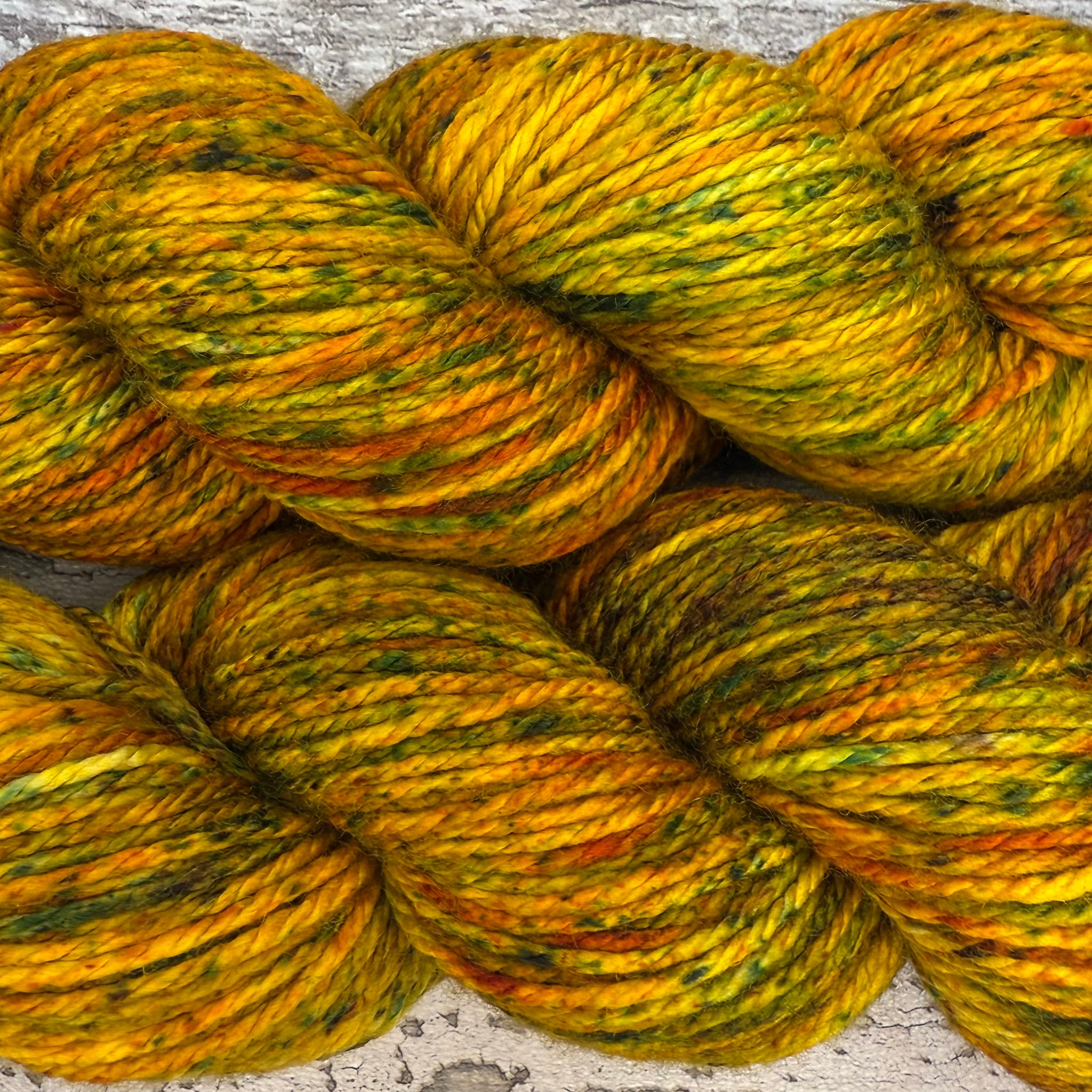 A 100% superwash treated merino aran weight yarn. It’s soft and cosy, and makes for a quick knit. Suitable for approximately 5-6mm needles. About 166 metres per 100g skein. Not for socks.