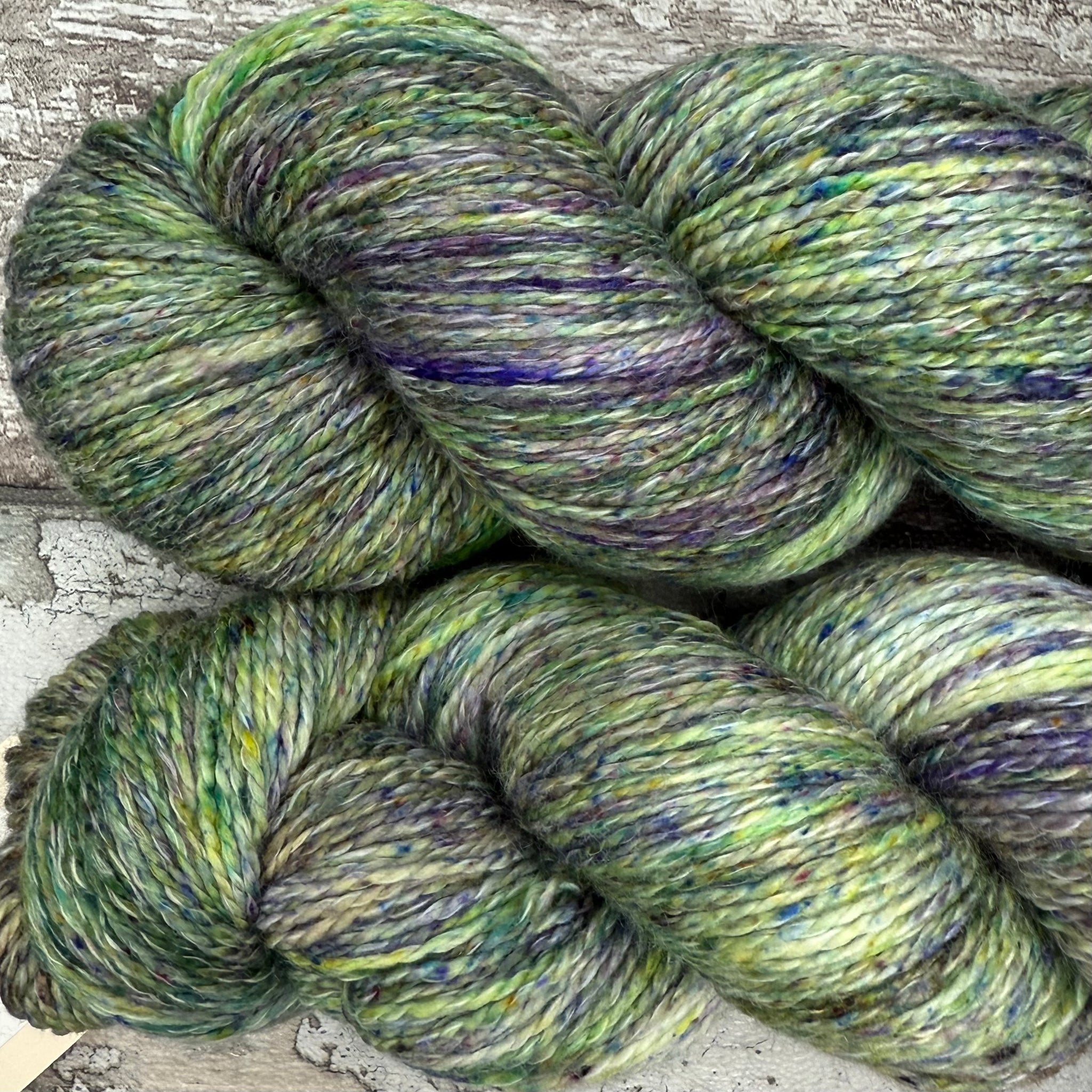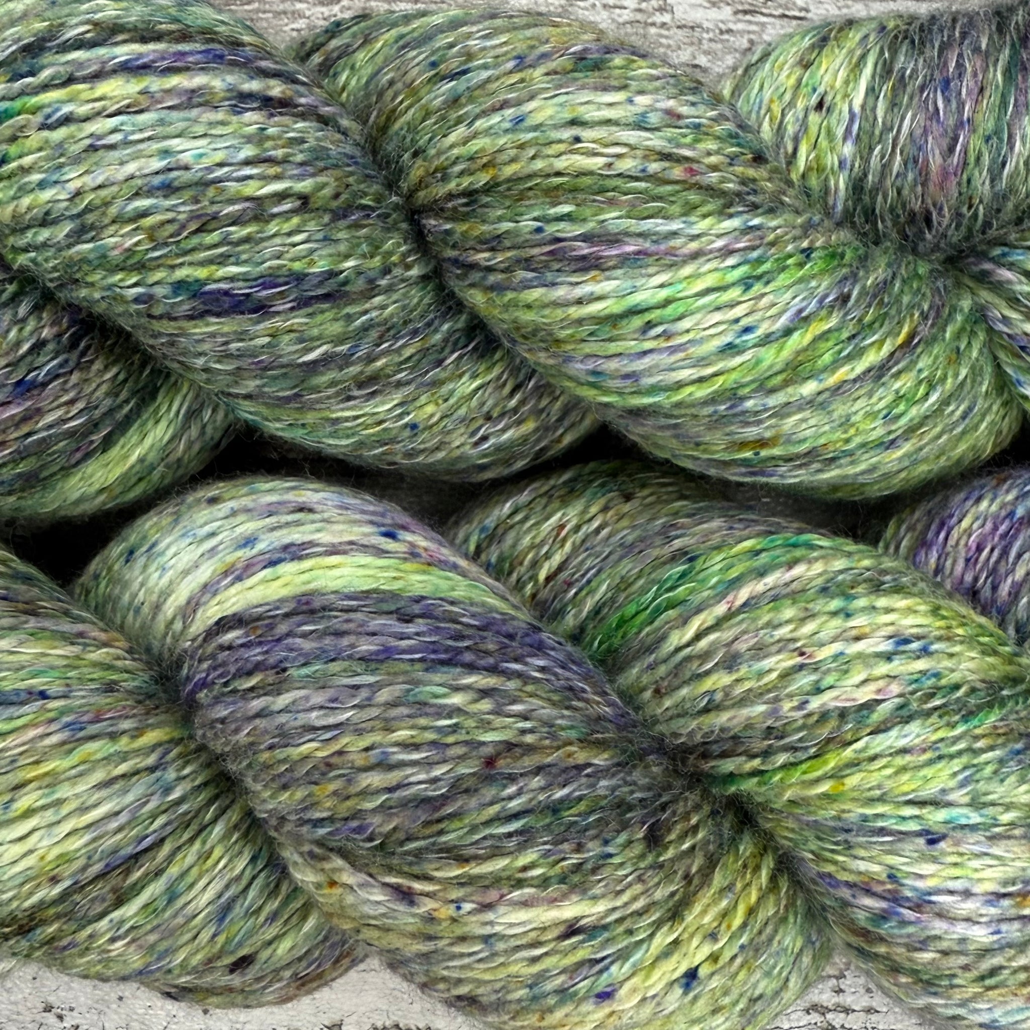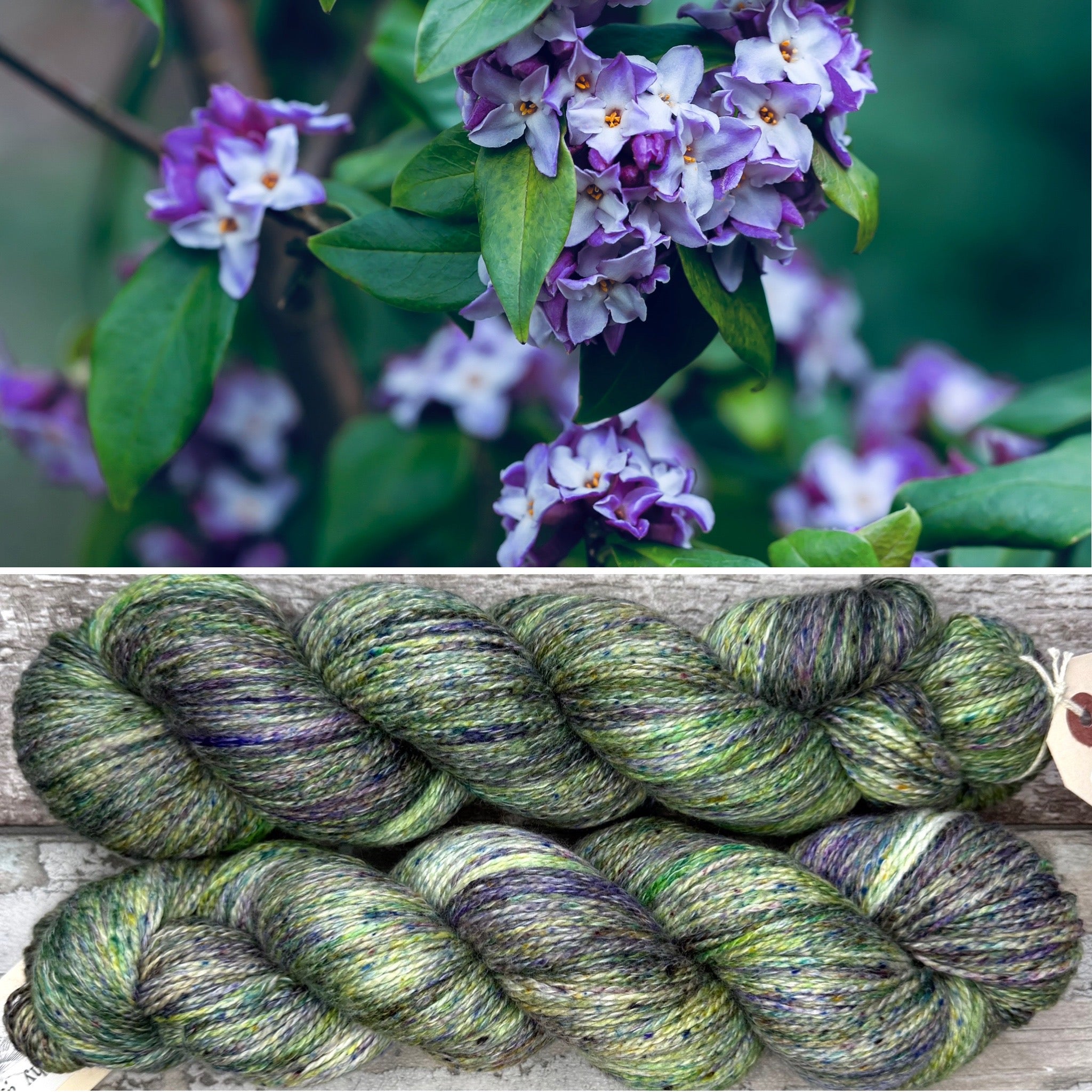 Inspired by the beauty and scent of Fragrant Daphne, this delicate colourway blends soft blush purple with subtle green undertones. Each skein captures the essence of blooming petals and sunlight, offering a gentle floral scattering of colour perfect for delicate knits, graceful shawls, and romantic handmade pieces.