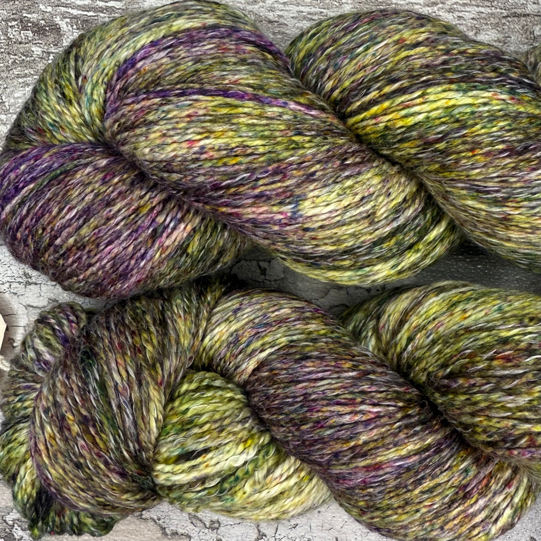 Around 400 metres per 100g skein. Suitable for 2-3mm needles or hook. Suitable for socks. It is presented as a skein. If you would like it caked then this adds 24h to the dispatch time.